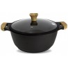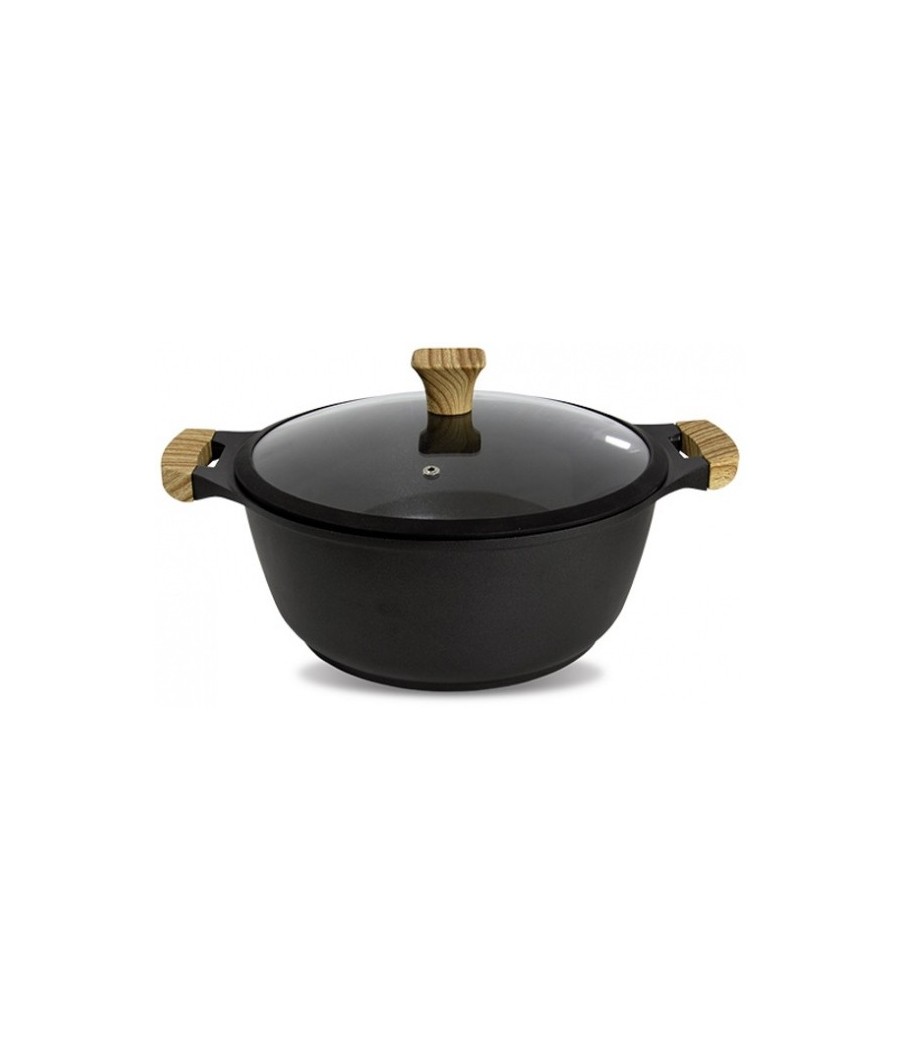 Χύτρα με καπάκι 24 cm με τριπλή επίστρωση ILAG Ultimate ελβετικής τεχνολογίας και χειρολαβές από βακελίτη με ξύλινη βαφή μαλακής αφής.