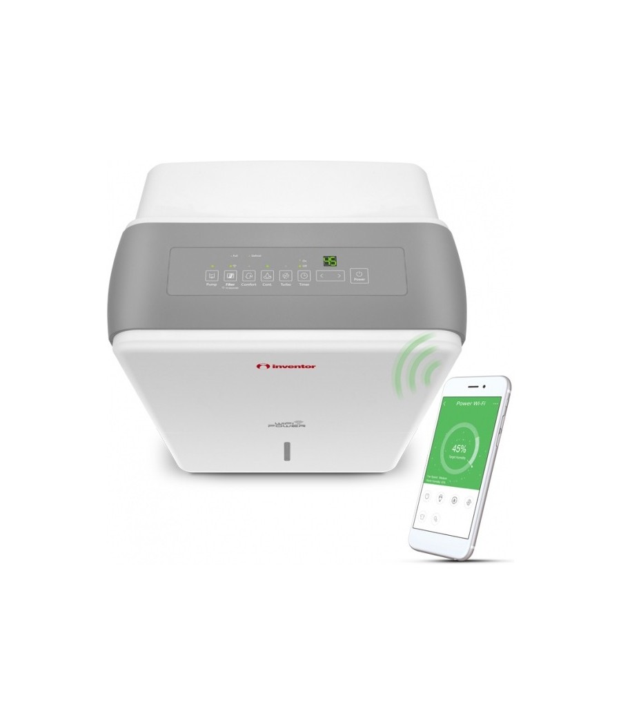 Αφυγραντήρας Inventor Power WiFi PWR-WIFI-50 lt. Με τεχνολογία WiFi ρυθμίζετε τη συσκευή οπουδήποτε και αν βρίσκεστε οποιαδήποτε στιγμή της ημέρας μέσω του smartphone ή του tablet σας. Διαθέτει τη δυνατότητα συνεχούς αποστράγγισης και ενσωματωμένη αντλία νερού με δυνατότητα ανύψωσης 5 μέτρων, σας επιτρέπει να συνδέσετε τη συσκευή με το δίκτυο αποχέτευσης. Εξασφαλίστε τη συνεχή αποστράγγιση ακόμα και στις πιο απαιτητικές καταστάσεις και ξεγνοιάστε από το συνεχές άδειασμα του δοχείου νερού. Η αντλία νερού αφορά μόνο το μοντέλο PWR-WIFI-50.