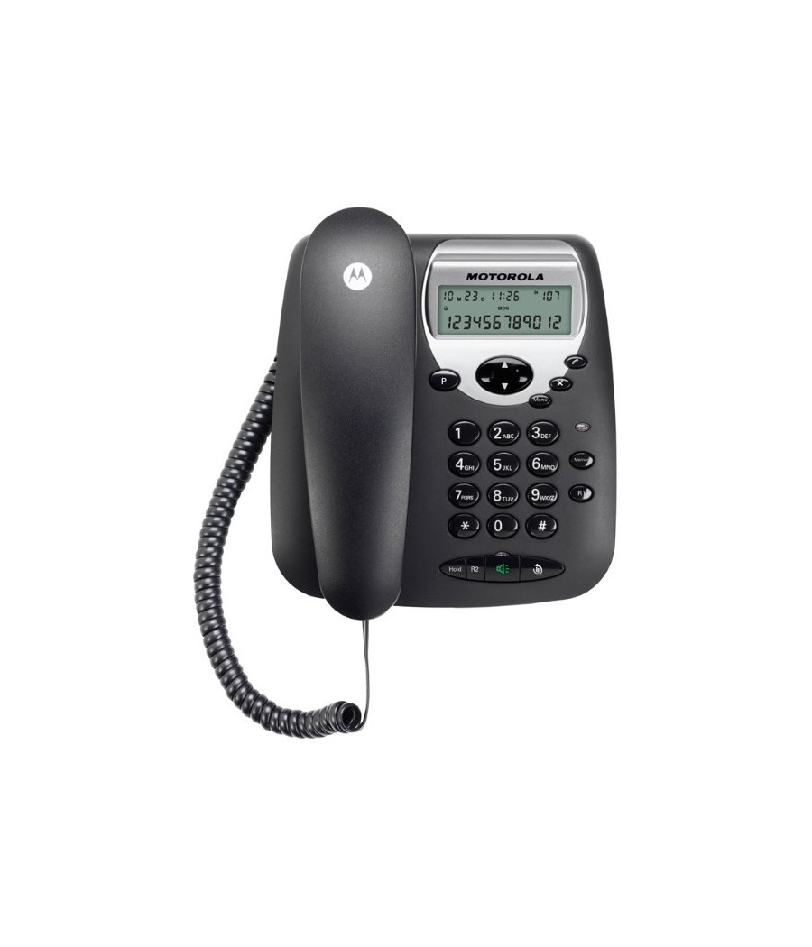 Ενσύρματο τηλέφωνο Motorola CT2 με μεγάλη οθόνη και δυνατότητα στερέωσης στον τοίχο. Με αναγνώριση κλήσης και Hands-free μεγάφωνο για ανοιχτή συνομιλία.