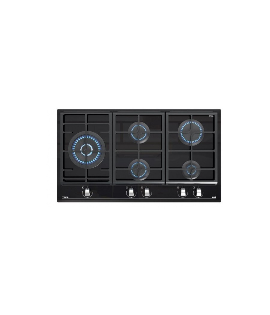 Κεραμικό πλατώ γκαζιού με 9 βαθμίδες ρύθμισης της φλόγας (ExactFlame), χειριστήριο με εργονομικούς περιστρεφόμενους διακόπτες, 5 ζώνες μαγειρέματος γκαζιού και Αυτόματη ανάφλεξη!