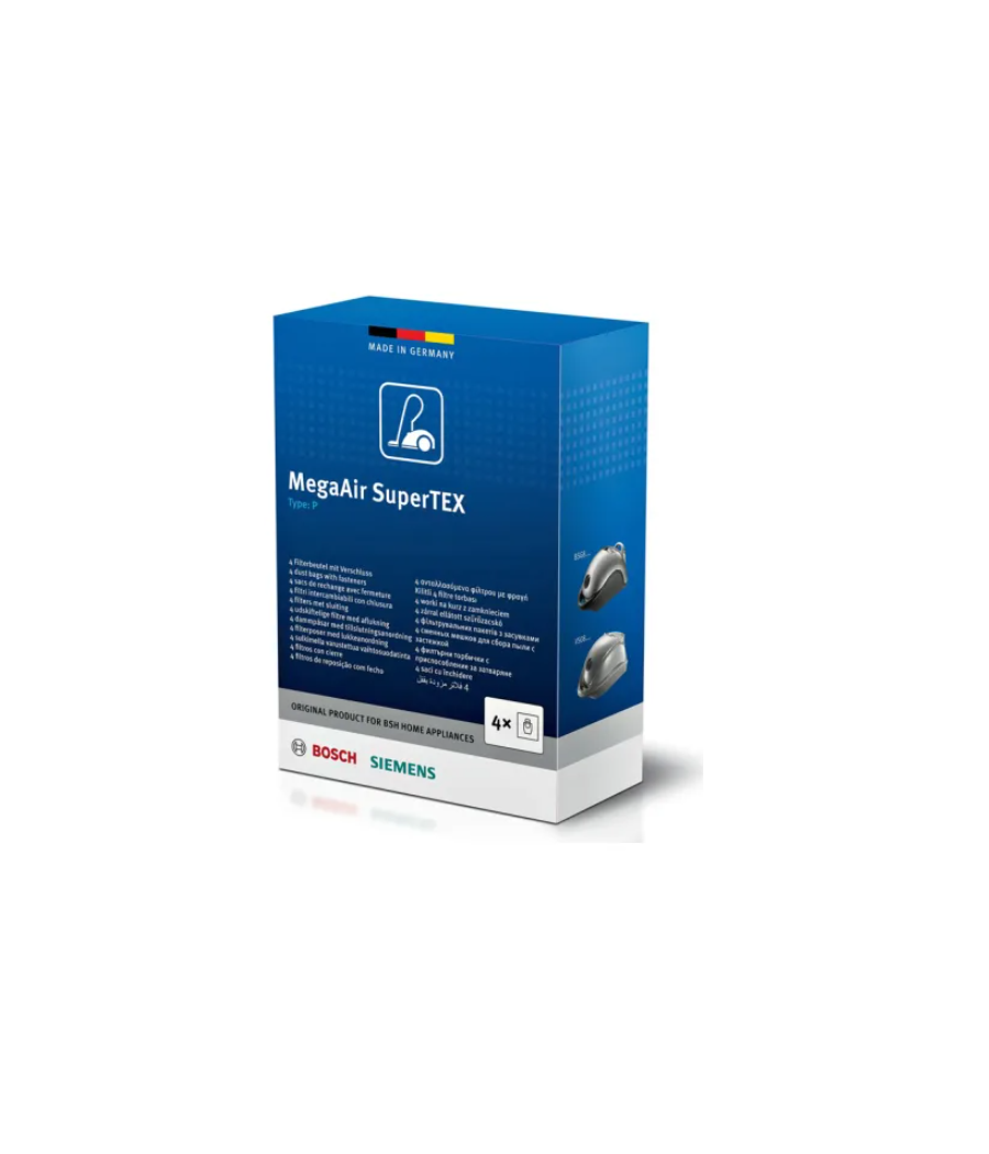 Σακούλες σκούπας για μοντέλα Bosch τύπου BSG8 και Siemens τύπου VS08G. Η συσκευασία συμπεριλαμβάνει 4 σακούλες και 1 αντιμικροβιακό φίλτρο υγιεινής.