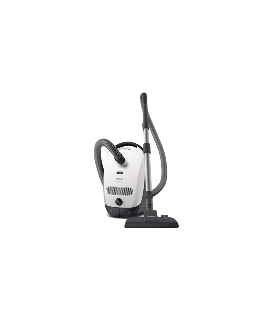Κυλινδρική ηλεκτρική σκούπα δαπέδου με σακούλα, Classic C1 Flex σε λευκό λωτού χρώμα με τηλεσκοπικό σωλήνα μικρών διαστάσεων Comfort τρία ενσωματωμένα εξαρτήματα και φίλτρο AirClean.
