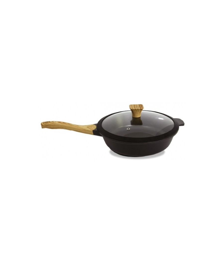 Τηγάνι βαθύ με καπάκι 28 cm με τριπλή επίστρωση ILAG Ultimate ελβετικής τεχνολογίας και χειρολαβές από βακελίτη με ξύλινη βαφή μαλακής αφής.