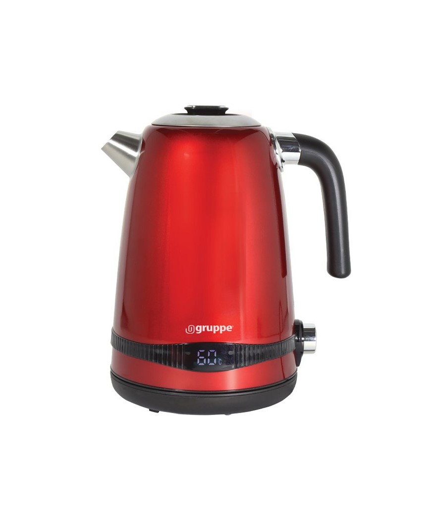 Βραστήρας χωρητικότητας 1,7 λίτρων, σε κόκκινο χρώμα με ψηφιακή ένδειξη θερμοκρασίας από τη Gruppe!